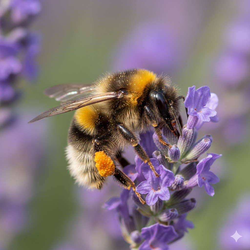 Prompt: “Macro λήψη μιας μέλισσας πάνω σε ένα λουλούδι λεβάντας, φαίνονται οι λεπτομέρειες στα φτερά και η γύρη, φυσικό φως, εξαιρετική λεπτομέρεια (hyper-detailed).”