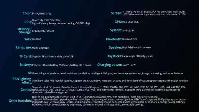 Σύμφωνα με την επίσημη παρουσίαση, το ANBERNIC RG 477V διαθέτει: