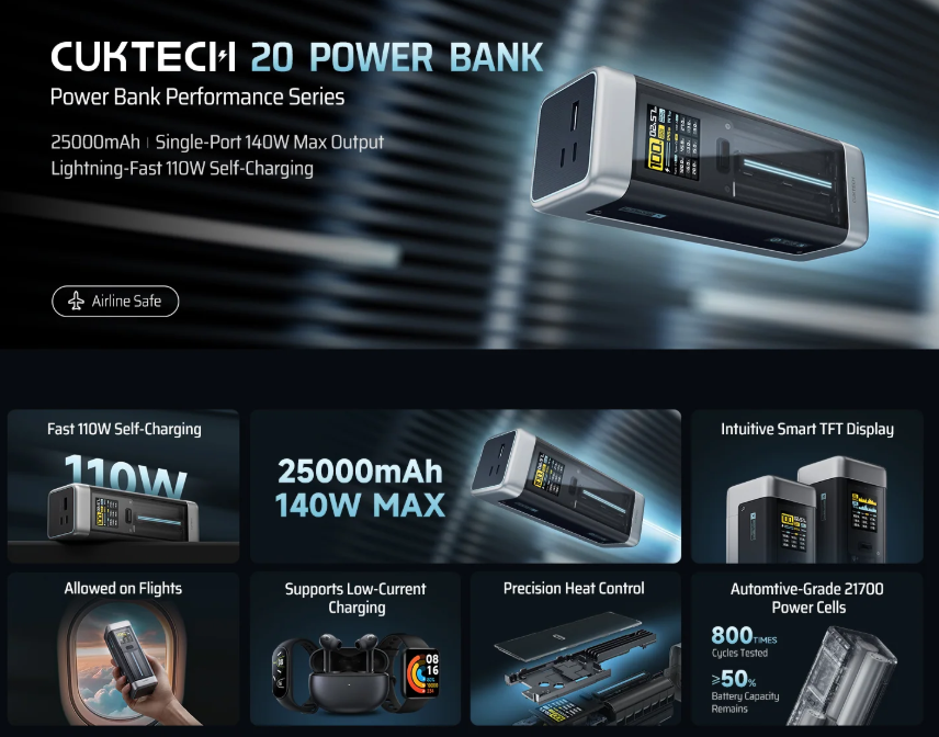 Για όσους ζητούν ισχύ, ασφάλεια και κομψότητα, το CUKTECH 20 είναι η ιδανική επιλογή για ταξίδια, εργασία και καθημερινή χρήση.