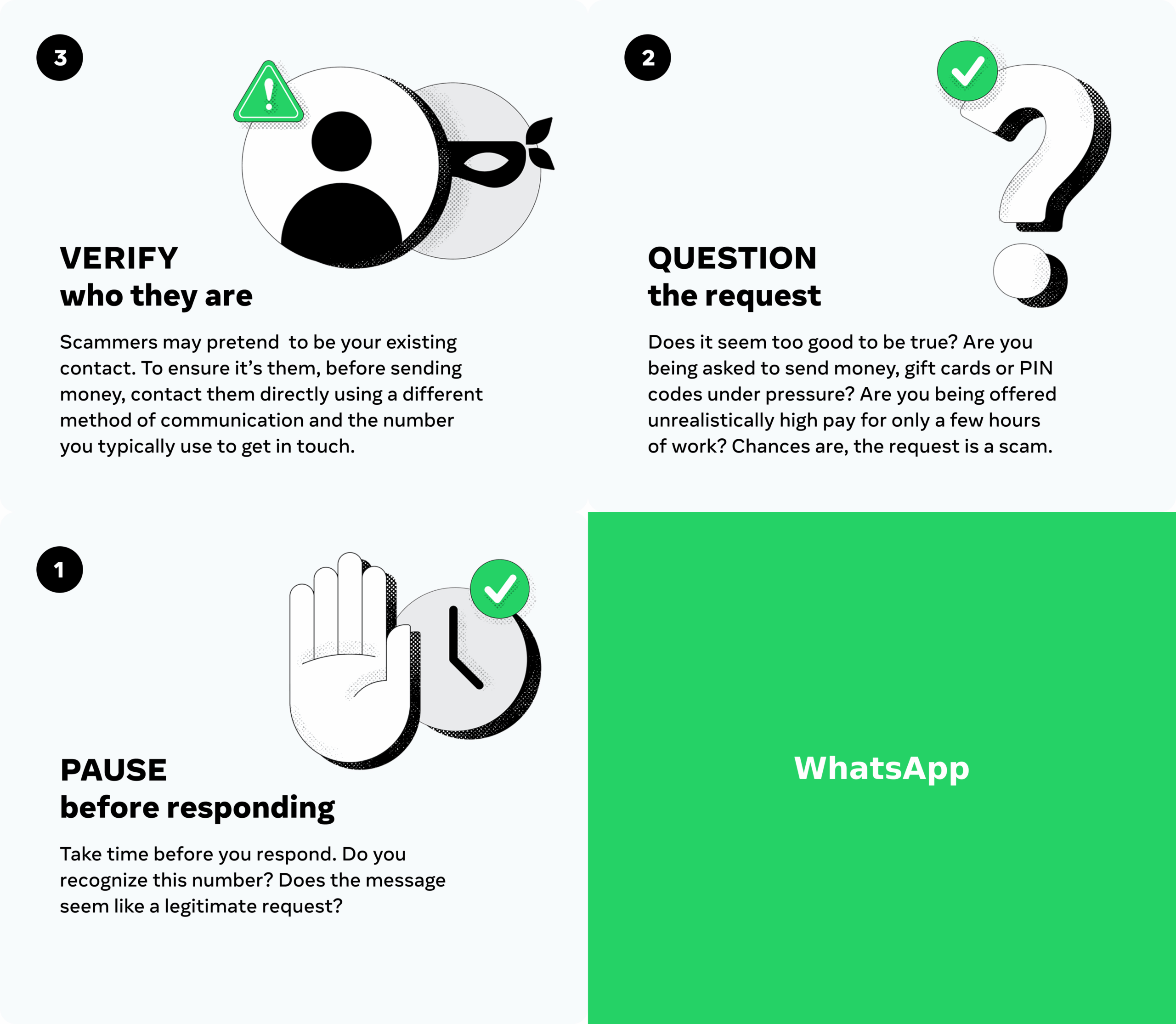 Για να προστατευθείτε, ακολουθήστε την απλή αλλά αποτελεσματική μέθοδο ΠΑΥΣΗ – ΕΛΕΓΧΟΣ – ΕΠΑΛΗΘΕΥΣΗ πριν απαντήσετε σε οποιοδήποτε ύποπτο ή ασυνήθιστο μήνυμα, ειδικά αν προέρχεται από άγνωστο αριθμό και υπόσχεται γρήγορο κέρδος.